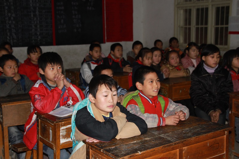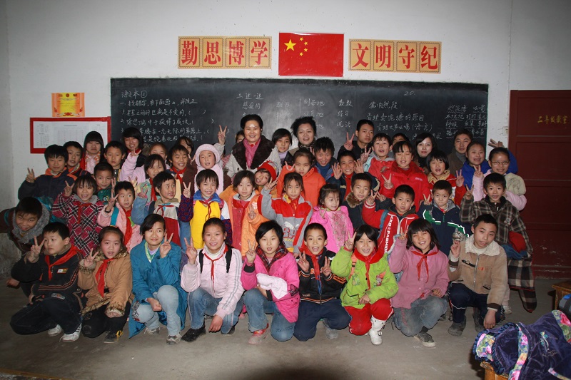 2009年12月12日,湖北省阳光慈善物资中心董玉霞理事长,和爱心画家殷克慧一同来到四海小学,为那里的农民工子女送温暖。