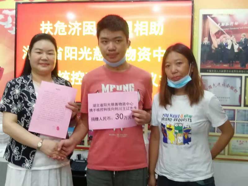 2021年9月8日,“扶危济困 守望相助”湖北省阳光慈善物资中心携手核控科技捐赠仪式在汉举行,阳光慈善按照捐赠单位核控科技法人张鹏先生的意愿,向利川市王辽先生定向捐赠人民币30万元,用于治疗心脏疾病,出席捐赠仪式有阳光慈善董玉霞理事长、阳光慈善党支部书记刘汉昌、法律总顾问李春生、律师王平、柳汉军总经理、