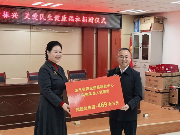2026年3月26日,湖北省阳光慈善物资中心携手九州通医药集团向来凤县捐赠医疗物资仪式在来凤县卫健局会议室隆重举行。本次捐赠物资总价值469万元,将专项用于支持来凤县基层医疗卫生机构提升服务能力,助力“健康中国”战略在基层落地生根。